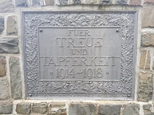 Die Bilder zeigen das Ehrenmal / Denkmal zum 1. Weltkrieg und die Gefallenen der Feudinger Ortschaften. Das Feudinger Ehrenmal ist ein besonderer Ort. Über eine Allee gelangt man zum Platz auf dem die Säule mit den Gedenktafeln steht. Überquert man den Platz gelangt man zu einer Mauer mit den Tafeln und Inschriften Gefallener und Vermisster im 2. Weltkrieg aus Feudingen. Das gesamte Gelände ist stets gepflegt und in hervorragendem Zustand.